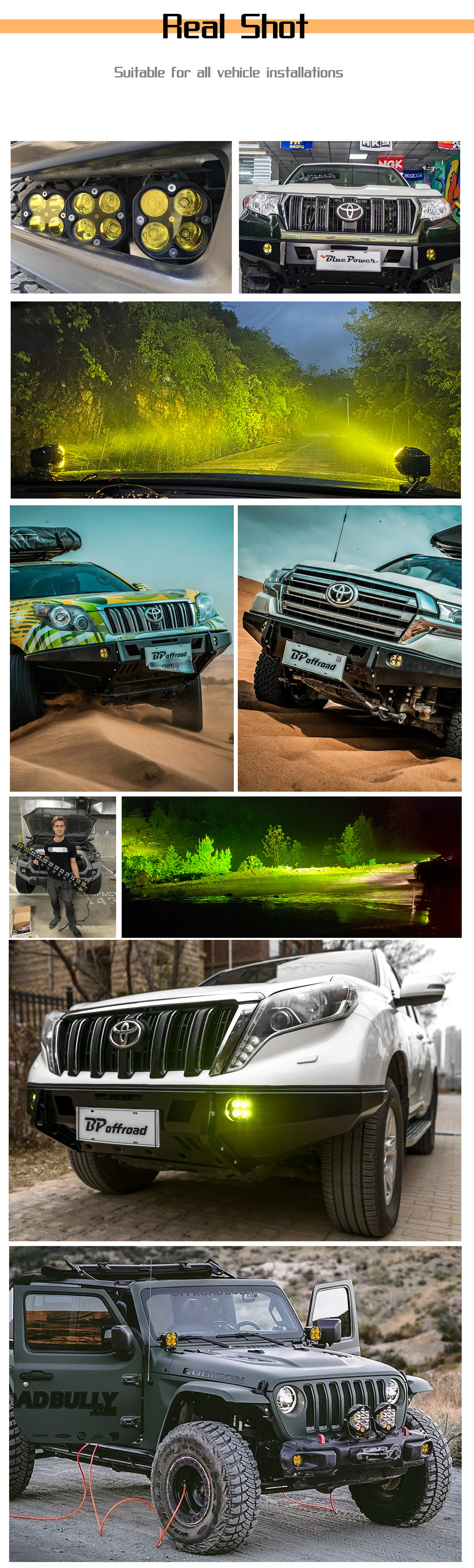 3. Front bumper position (installed on the front bumper, this position can be used as fog lights, headlights, off-road