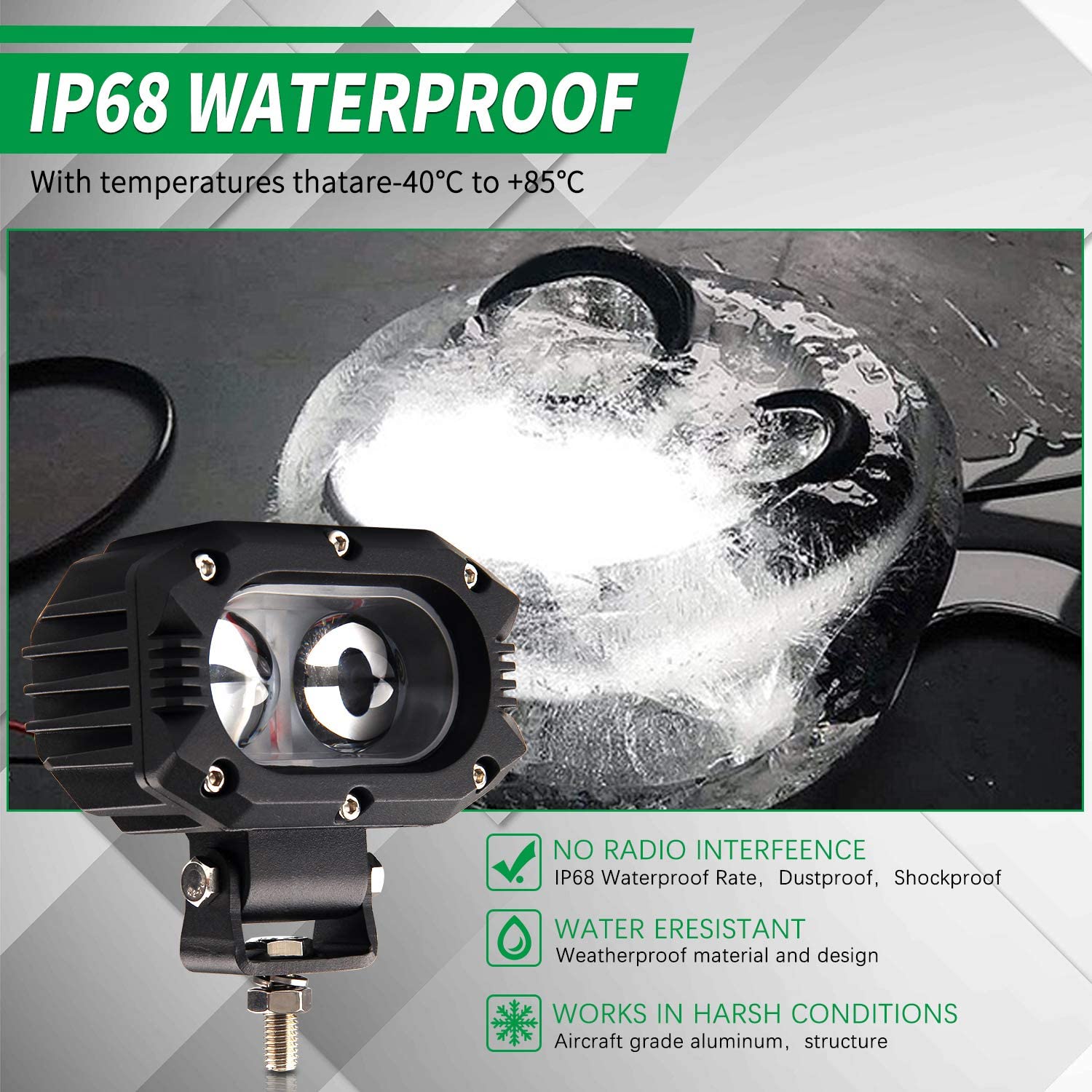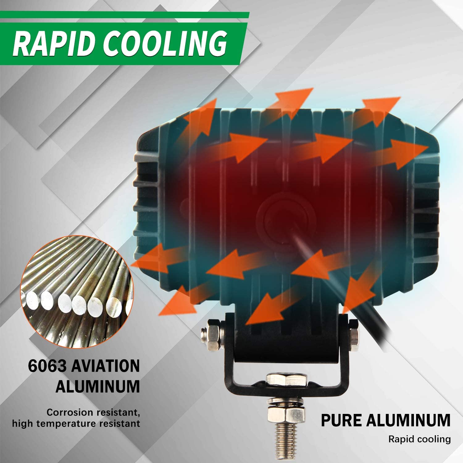 * HIGH QUALITY HOUSING & ACCESSORIES: Heavy duty 6063 aluminum housing, oversized heat-sink keeps lights running cooler.