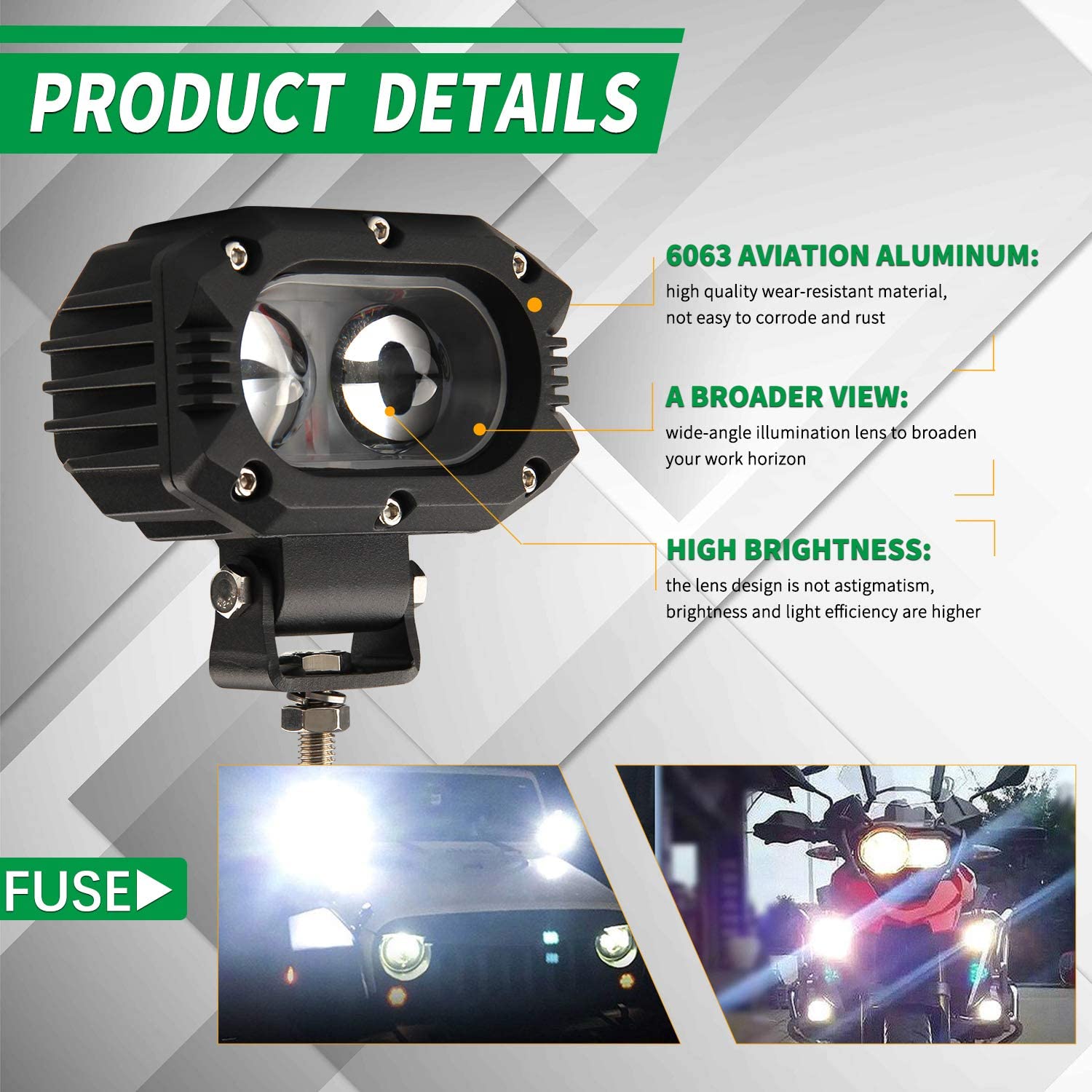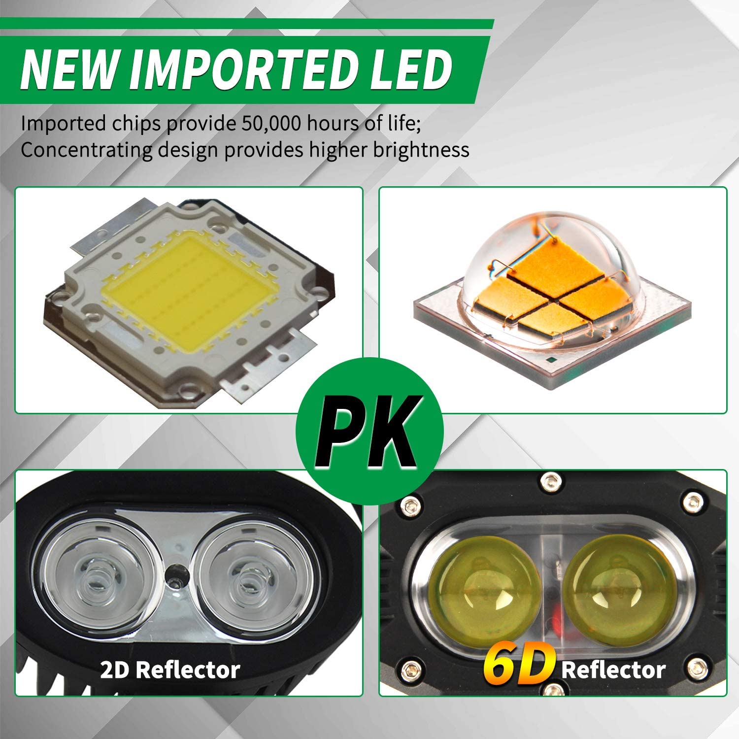 Features: * SUPER BRIGHT & LONG LIFESPAN: 50W each light, using high power 50 watts 6000k CREE LED chips and specially designed