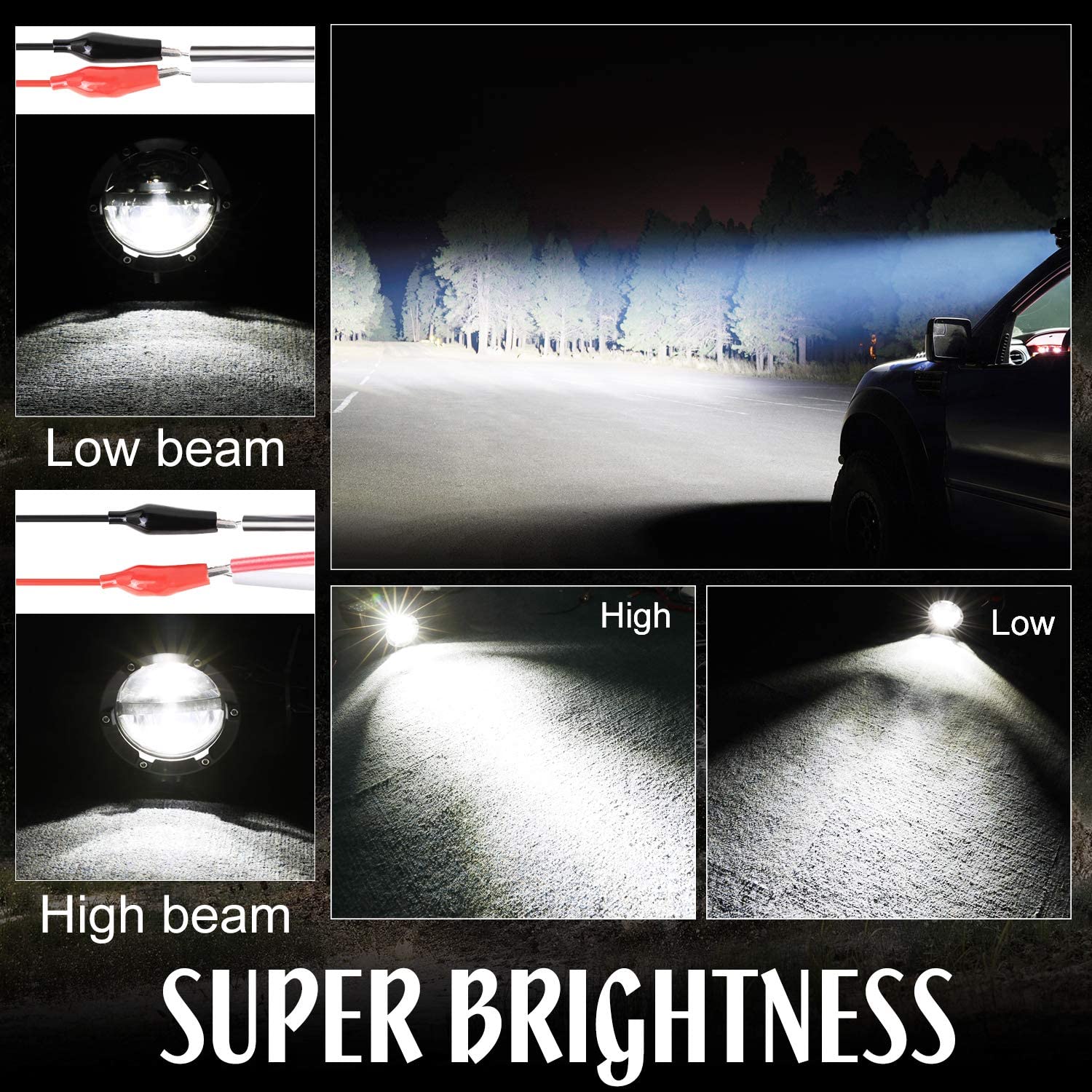 * HIGN LOW BEAM DESIGN - Combination of high low beam, engineered with the use of the latest light technologies and feature clear lenses so that you can see the road nearby as well as long distance, these led pod lights deliver superior illumination you need to improve your nighttime vision and driving safety, helping you to see any obstacles and objects coming your way during dusk or night rides, thus facilitating a safe and fatigue-free driving experience wherever you go.