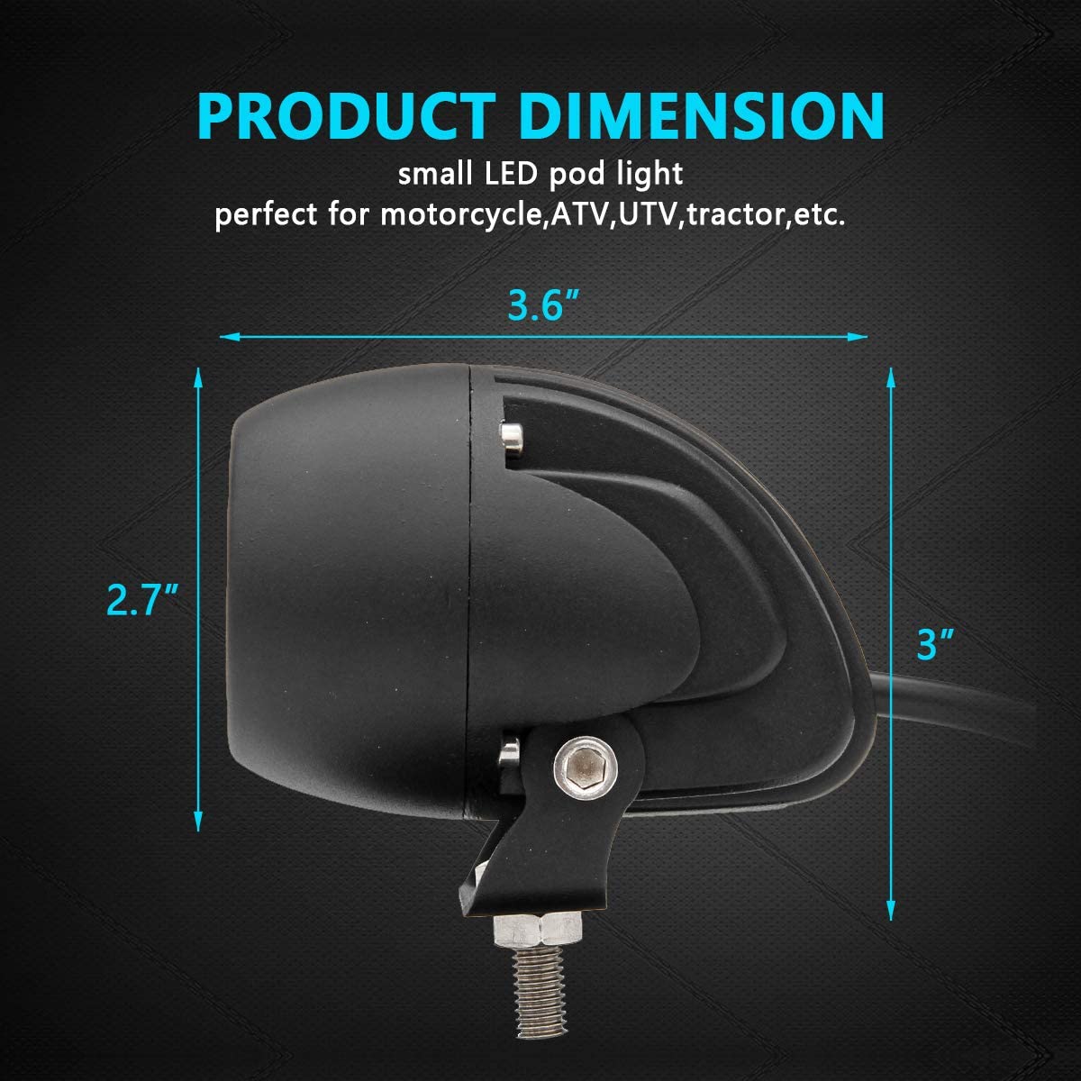 INCREDIBLE BRIGHTNESS - Combine High intensity CREE LEDs with advance 7D optics, the small LED Pods Lights are small but a lot of power with 50W & 6,000 raw lumens in a light that measures just size 2.75” x2.75” x 3.54”. 6000k bright white light can effectively light up the forward dark road.