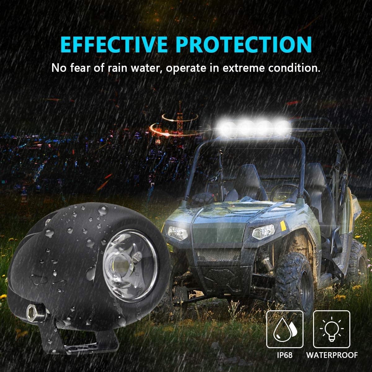 EXCELLENT EFFICIENT COOLING - Relatively heavy & dense, deeper cooling fins for quick heat elimination. In order to get best heat dissipation, our LED pods also adopt 6063 aluminum to maximize surface area for optimal cooling. Effectively Extend light bar lifespan beyond 50,000 hours.